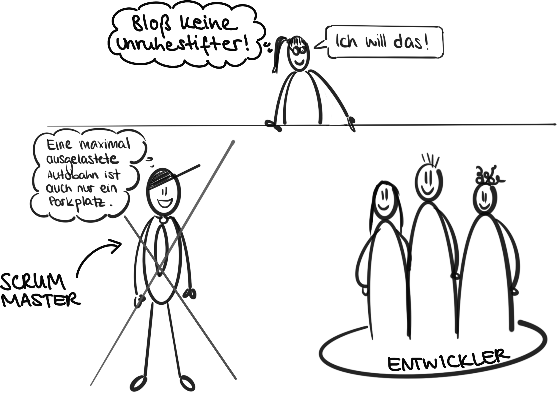 - Das Ziel des Scrum Masters ist es weniger, die Produktivität des Teams zu erhöhen, sondern mehr Verschwendung zu minimieren.